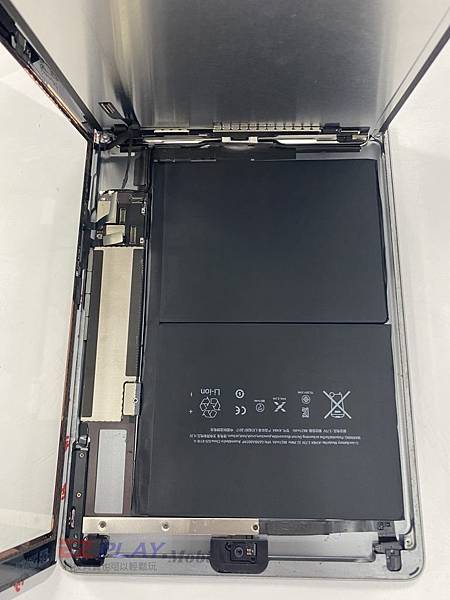 首先我們先把觸控玻璃給加熱滑開,觸控玻璃跟顯示液晶是分開的所以滑開的時候要特別小心觸控玻璃喔,打開之後我們就可以看到有主機板、電池、相機、充電孔等等。